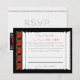 This 4.25"x5.5" wedding reply card features a lean, crisp original design of subtle gray on white pinstripes & thin black spring dividers suggestive of an architectural column, topped by a Rennie MacIntosh inspired border of red roses on a black background with white craftsman style ornamentation. All text is customizable. #zazzlemade