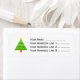 This design features a simple decorated Christmas tree depiction, consisting mainly of rectangles and squares. The address next to it can be personalized.