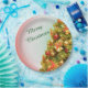 Decorated Christmas tree with merry christmas text Paper Plates
