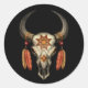 Decorated Native Bull Skull with Feathers on Black Classic Round Sticker