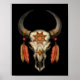This unique design features a symmetrical bull skull with four feathers attached to the horns. Rough textures and natural colors gives the graphic a realistic look. The skull is decorated with native patterns including a stylized star in the center of the forehead. This aggressive skull design is a stunning and unique Native American design.