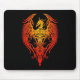 This red and yellow phoenix design is decorated with flowing tribal swirls and dot patterns. The symmetrical wings extend out from each side of the pattern while the tail falls down the center forming a point at the base. The bold lines are highlighted which creates a subtle shine on the surface. This aggressive yet elegant phoenix sits on a pure black background which creates a beautiful and stylish mousepad design.
