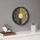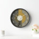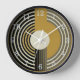 A minimalist 1950's style art deco wall clock with a simple circular design in gold, black and beige