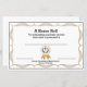 Decorative white academic award certificate, with gold swirl border and graphics of a gold tone ribbon with a black education symbol. Personalize all the text to suit your class room or school awards ceremony needs.