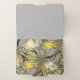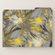 Decorative file folders feature an elegant artistic abstract floral pattern in a silver and golden yellow color palette with black and white accents. A bold elegant design that will add a touch of style to your working space.
