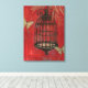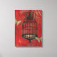 Two pale butterflies hover around a birdcage in this painting by Norman Wyatt. Leaves hang over the birdcage, and it all rests on a crimson background. Order this print today!