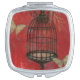 Two pale butterflies hover around a birdcage in this painting by Norman Wyatt. Leaves hang over the birdcage, and it all rests on a crimson background. Order this print today!