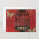 Two pale butterflies hover around a birdcage in this painting by Norman Wyatt. Leaves hang over the birdcage, and it all rests on a crimson background. Order this print today!