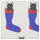 This is a fun fabric for cat lovers. There are lots of things that you can decorate with this. The design features a painting of a black cat climbing out of a red and blue Christmas stocking. The design is repeated in an alternating pattern.