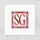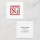 A square business card template with initials placed inside a 1.25in square with a decorative frame. In this version the initials are in the Integrity bold font. Name and profession/job title along with telephone, email and website address in black on the reverse side on a white background, using variations of the Matt Antique font.