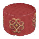 This decorative Chinese 'knot' symbol stands out against a burgundy red background with subtle, yet, slightly darker red Chinese symbols.