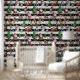 Decorative Christmas Stripes themed Pattern Design featuring snowflakes, reindeer, Xmas candy cane, Christmas trees, elf, santa Claus, Snowman stars and Christmas balls seamless repeat pattern Design WALL WALLPAPER