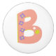 Brighten up a girls bedroom with these decorative personalized monogram letter A hardware knobs. Ideal for a girl who has a name beginnings with A. Coral orange, with purple flowers and white and green star letter art other letters and colors available on request. © Art and design by Sarah Trett for www.mylittleeden.com