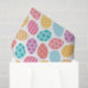 A bundle of brightly coloured Easter eggs, decorated with hearts, stars, stripes, zig-zags and polka dots! Decorate your Easter party with gifts wrapped in this cheerful Easter pattern.
