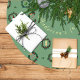 Christmas decorations inside Christmas wreaths: Christmas stockings, cozy candles, Christmas balls and ornaments, Santa Claus figure, candy cane. Fun design with a green background, without any flashiness, to decorate the base of your Christmas tree. Customizable with your family name or any text you want.