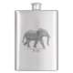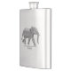 Personalized stainless steel flask, with graphics of a decorative embossed looking elephant. Personalize the name for yourself or as a great gift idea for him.