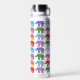 The bottle looks even better in real life. The ice cubes I put in lasts all day! I have my bottle with me all the time. It's summer and having something cold to drink feels amazing. With this bottle I always have something super cold. I have only tried the hot drink once and it lasted a long time as well. The color blue is a navy blue and the white printed on it is vibrant. It printed perfectly. I love my personalized smile water bottle.