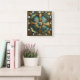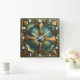 Decorative Floral Panel With Turquoise and Gold Square Wall Clock