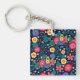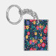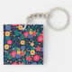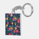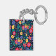 Decorative Flowers Leaves Black Background-63378 Keychain