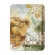 This decorative fresco design by Megan Meagher features a globe flower. An abstract background surrounds the flower, creating a surreal vibe that contrasts with the realistic flower.