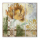 This decorative fresco design by Megan Meagher features a globe flower. An abstract background surrounds the flower, creating a surreal vibe that contrasts with the realistic flower.