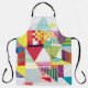 Great color and even though I ordered the kid size, it covers well enough to use during the holidays. I am not a big woman and prefer a shorter apron. I stand 5"6" and the length of the garment goes to mid-thigh. The tie straps fit well at my waist and even though there is no neck strap adjustment, the opening is plenty big enough. I am happy with the size and fit. I am sharing my apron with my 10 year old grandson, too! The color is vibrant and looks good, as shown on the website. The stitching looks strong and reinforced. Photographed is front side and back side of the apron, reinforced straps and coloring. My phone camera may not be the best at showing the details.
