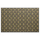 This unique fabric features an elegant pattern of gold fleur-de-lis symbols inside of a diamond-shaped lattice of decorative scrollwork.