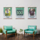 The design is crafted on a set of 3 wall tapestries with a rustic wooden frame. They can only be displayed on a vertical portrait.
