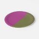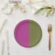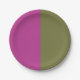 This paper plate has magenta on one side and olive on the other side. Half and half colored paper plate. These are great for wedding, showers or even graduation.