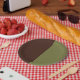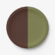 This paper plate has chocolate on one side and olive on the other side. Half and half colored paper plate. These are great for wedding, showers or even graduation.