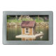 Decorative lake with bird house and alphine slide belt buckle