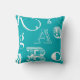Decorative Letters on Blue Background Throw Pillow