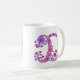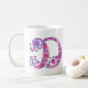 Decorative hand drawn capital Monogram D mug. Pretty hand drawn doodled design featuring hearts and flowers in purple and pink shades. © Unique typography art and design by Sarah Trett. www.sarahtrett.com for www.mylittleeden.com on zazzle