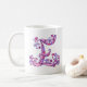 Decorative hand drawn capital Monogram E mug. Pretty hand drawn doodle initial letter E design featuring hearts and flowers in purple and pink shades. © Unique typography art and design by Sarah Trett. www.sarahtrett.com for www.mylittleeden.com on zazzle