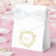 A beautiful decorative monogram gold faux foil design on a classic white favor box. Easily add your monogram initials to the front of this elegant wedding favor box.