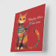 Decorative Ornamental Cat with Flowers Boho Art Square Wall Clock