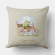 Decorative pillow "Happy Easter" with the image of a bunny on a bicycle.