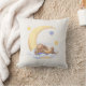 Decorative pillow with a cute plush rabbit sleeping in the clouds on the moon.