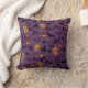 Decorative pillow with a modern minimalist design for Halloween, a pattern of silhouettes of skulls, ghosts, cobwebs, a silhouette of a cat, pumpkins on purple background.