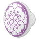 Decorative lavender purple and white pattern round ceramic pull knob.