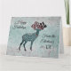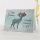 A decorative festive reindeer along with a snowflake and glittery stars backdrop creating a magical winter wonderland vibe where you can custom the card at the left and right corner making it uniquely your own.