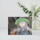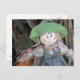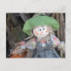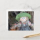 This close-up of a mini decorative scarecrow wearing blue overalls and a green hat while sitting atop a pumpkin covers the front of a horizontal full-bleed photo postcard. This adorable scarecrow image works well for a general fall/autumn theme as well as for Halloween and Thanksgiving specifically. This postcard can easily be customized to add text or change the background color. An alternative vertical photo postcard of this image is also available in my store.