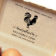 Decorative custom chicken egg carton stamp features a rooster in 4x5 inches with a personalized option for business name, address, and phone number. The option is — best poultry business accessory for your chicken egg carton.