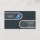 An elegant piece of simple design. In a dark blue cover with an underlying globe design, there are two rounded grey tab columns. At the upper tab, you have your prestigious name and job title. Westwards to this is the logo and its business name. At the lower grey column rest the contact details. There are two accentuating bright blue columns. The first one at the top houses your prestigious name and job title. Eastwards at the lower corner, you can find the slogan option.