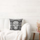 Decorative Sugar Skull Black White Gothic Grunge Design Throw Pillow or Accent Cushion with a skull and roses and decorative flourishes and hearts. The background is a subtle damask pattern. Perfect for Day of the Dead or Halloween.