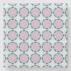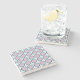 A decorative coaster featuring a symmetrical geometric pattern with blue, white, and brown hues shown from the front and back on a gray background.