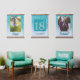 The design is crafted on a set of 3 wall tapestries with a rustic wooden frame. They can only be displayed on a vertical portrait.