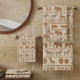 This eye-catching bath towel design features intricately patterned elephants, zebras, giraffes, rhinoceroses, lions, and monkeys arranged in stylized horizontal bands. Each animal and decorative border is filled with geometric, tribal-inspired markings, creating the sophisticated look of hand-stamped or woven textile art. The rich, earthy palette of browns and tans against a textured light background offers a warm, mature, and gender-neutral aesthetic, perfect for adding an authentic, cozy bohemian touch to any bathroom. Search ID1243 to see all the products in this design set. Note: design adapted from generative content.