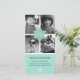 A large aqua-colored Star of David is the focal piece of this Hanukkah photo card. The star prints in the center of four of your own color or black-and-white photographs. The words "The Festival of Lights" print inside the star with swirls both inside and radiating outward from the star to make a lovely Hanukkah greeting card. A simple menorah prints at the bottom with your customized messages added above. Available in alternate colors with matching products.
