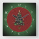 A pretty clock in green and red with a decorated christmas tree in the centre. This festive clock has white numerals. Perfect as a gift for the holiday season.